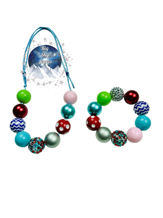 Merry & Bright Christmas Chunky Bubblegum Necklace OR Bracelet Pink, Purple, Green, Red & Silver Ages 3+ Christmas Multiple Variation Listing