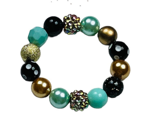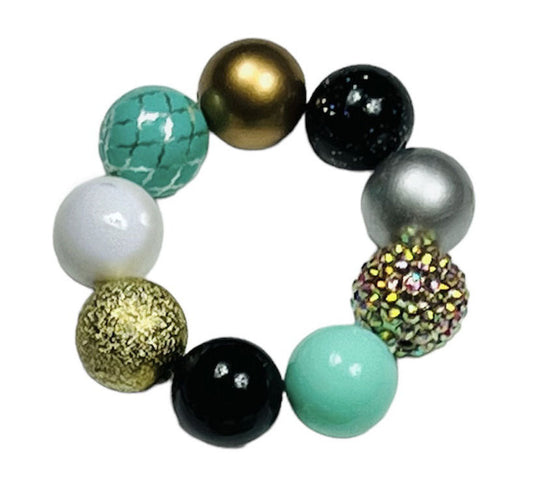 Mint, Black, & Gold Chunky Bubblegum Necklace OR Bracelet Princess Jewelry Ages 3+