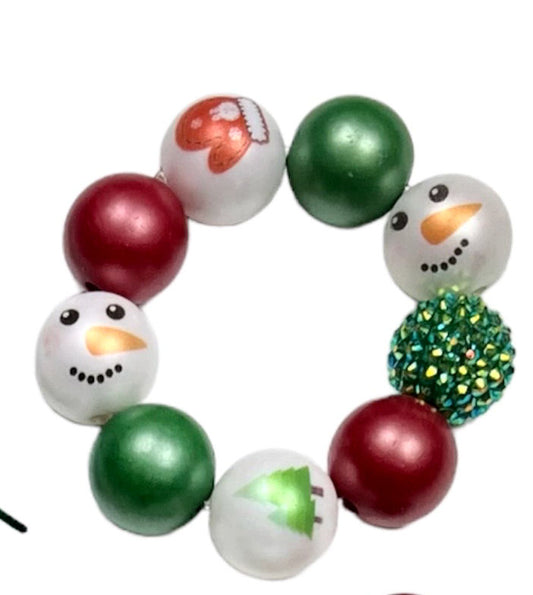 Snowman, Tree & Glove Christmas Chunky Bubblegum Necklace OR Bracelet Green Red White Ages 3+Multiple Variation Listing