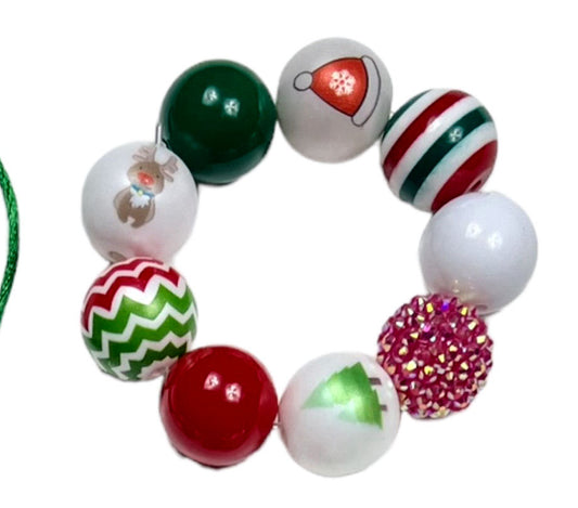 Reindeer, Hat & Glove Christmas Chunky Bubblegum Necklace OR Bracelet Green Red White Ages 3+Multiple Variation Listing