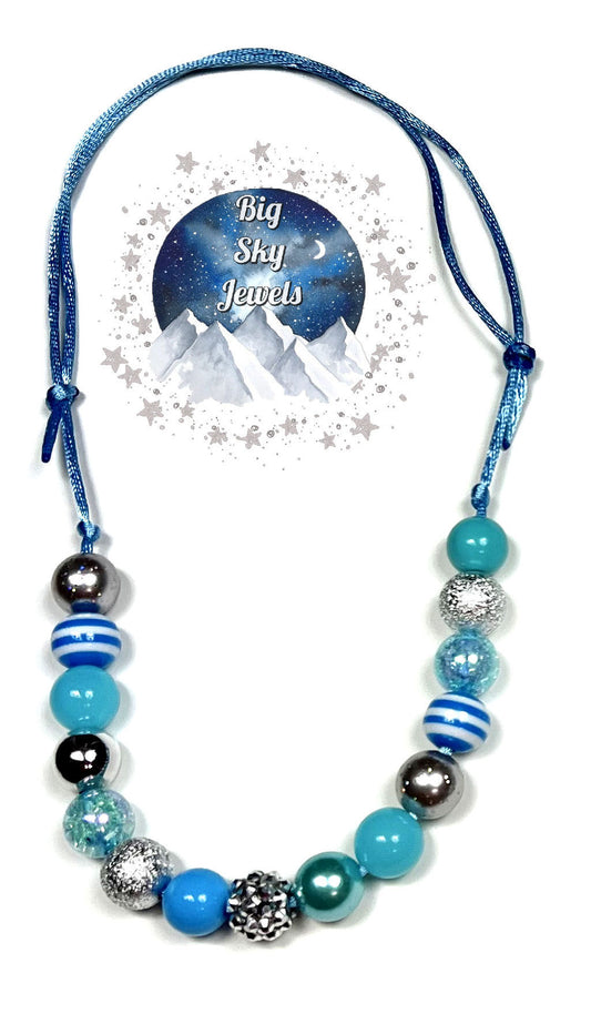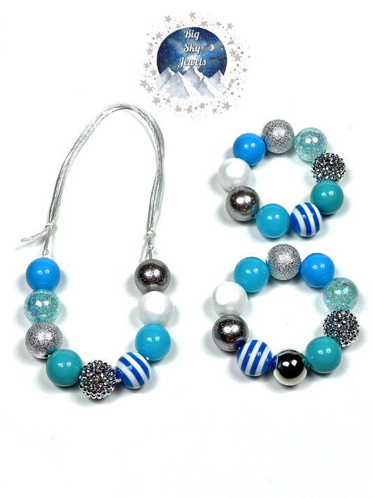 Ice Queen Chunky Bubblegum Necklace OR Bracelet Princess Jewelry Girls Ages 3+ Aqua Silver Blue Winter Snow Summer Multiple Variation Listing