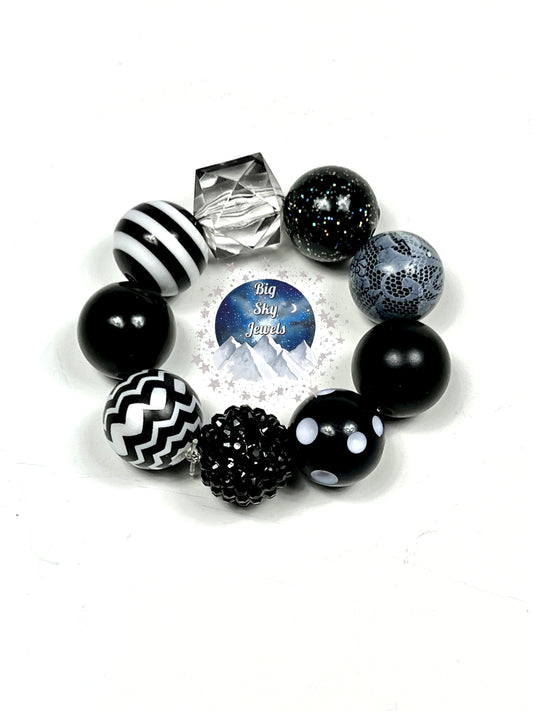Night Black Chunky Bubblegum Necklace OR Bracelet Black & White Ages 3+ Halloween Solid Colors Multiple Variation Listing