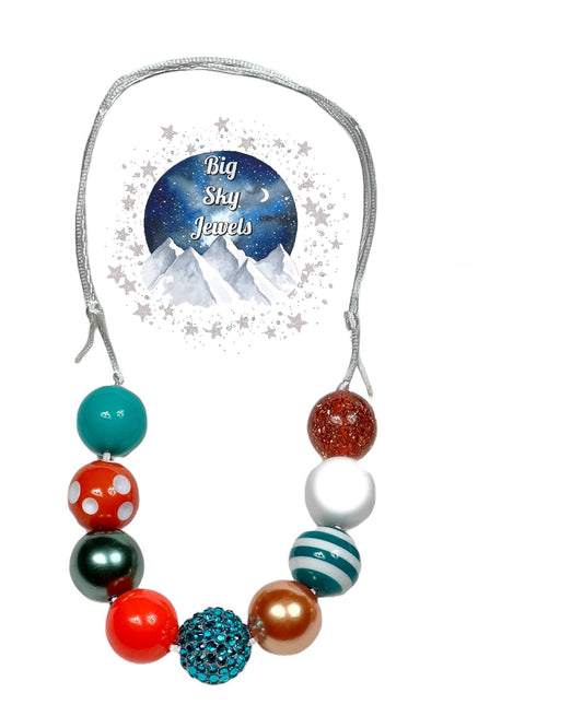 Teal & Orange Chunky Bubblegum Necklace OR Bracelet Princess Jewelry Ages 3+ Fall Multiple Variation Listing