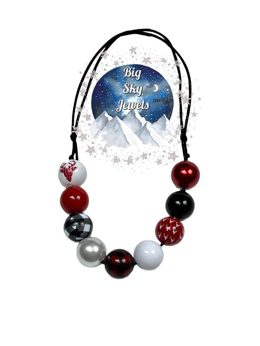 Buffalo Plaid Deer Chunky Bubblegum Necklace OR Bracelet Black Red & White Ages 3+ Christmas Winter Hunter Multiple Variation Listing