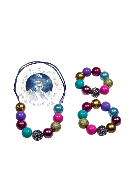 Big Sky Jewels Princess Chunky Bubblegum Necklace OR Bracelet Princess Jewelry Gold, Lavender, Turquoise, & Medium Pink Ages 3+ Summer Winter Multiple Variation Listing