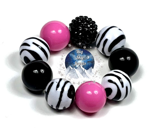 Pink Zebra Chunky Bubblegum Necklace OR Bracelet Pink, Black & White Zebra Stripes Ages 3+ Girls or Boys Jewelry Summer Spring Multiple Variation Listing
