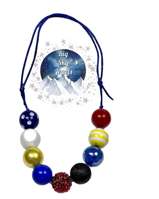 American Chunky Bubblegum Necklace Adult Size Red White Blue Patriotic America USA Jewelry Ages 3+ Fourth of July 4th Summer