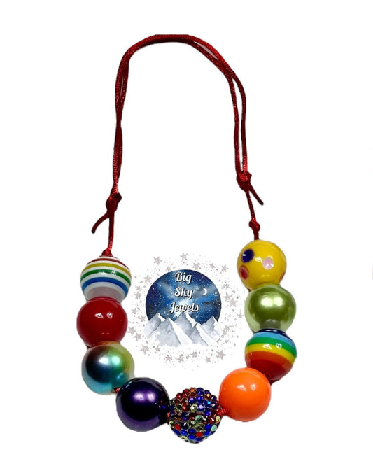 Rainbow Chunky Bubblegum Necklace OR Bracelet Red Green Purple Blue Orange Ages 3+ Summer Multiple Variation Listing