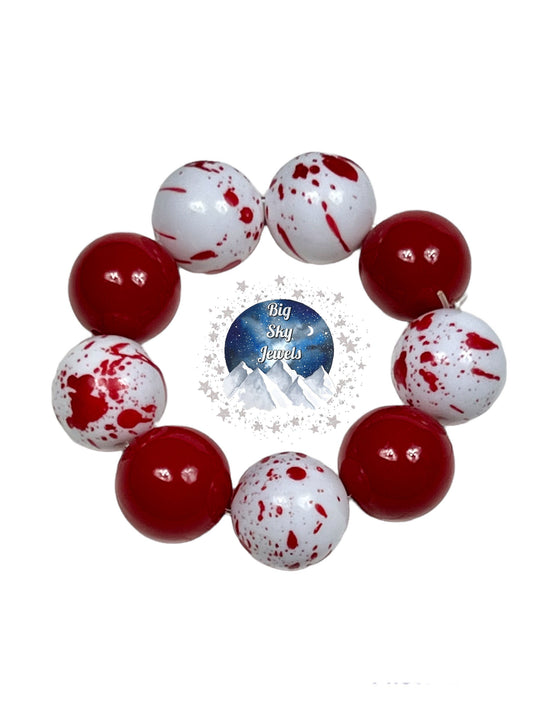 Red Blood Splatter Chunky Bubblegum Necklace OR Bracelet Red White Halloween Paint Splatter Ages 3+ Multiple Variation Listing