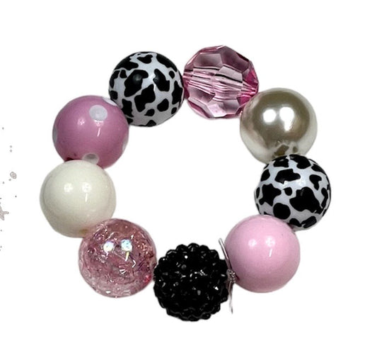 Strawberry Moo Cow Chunky Bubblegum Necklace OR Bracelet Black White Pink Ages 3+ Kids Girls Farm Animals Summer Multiple Variation Listing