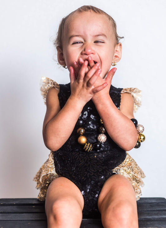 ~ New Years Eve ~ Chunky Bubblegum Necklace Ages 3+ Gold Black Girls