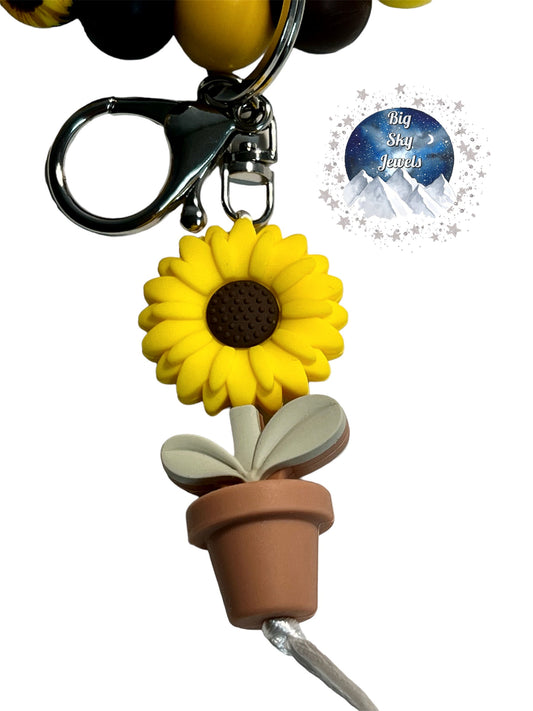 Sunflower Silicone Wristlet Keychain Sunflower Print, Black, Brown, and Yellow Ages 8+ Kids or Ladies Moms