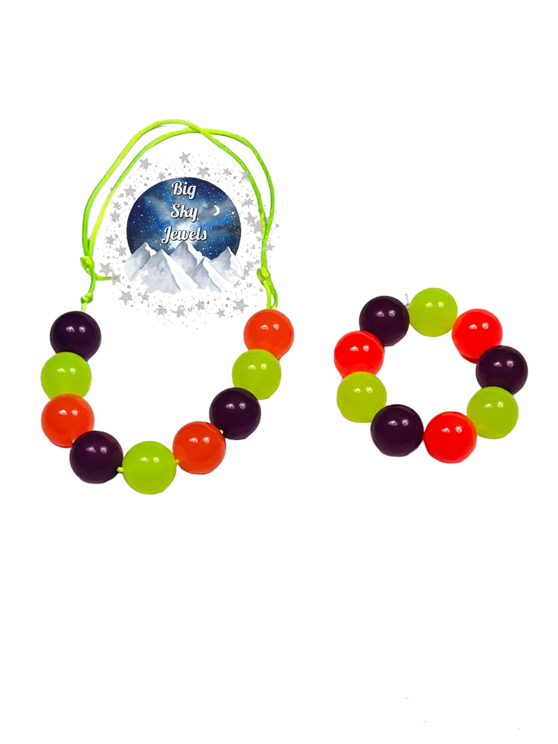 Glow In The Dark Multicolored #1 Chunky Bubblegum Necklace OR Bracelet Ages 3+ Summer Fall Halloween Multiple Variation Listing